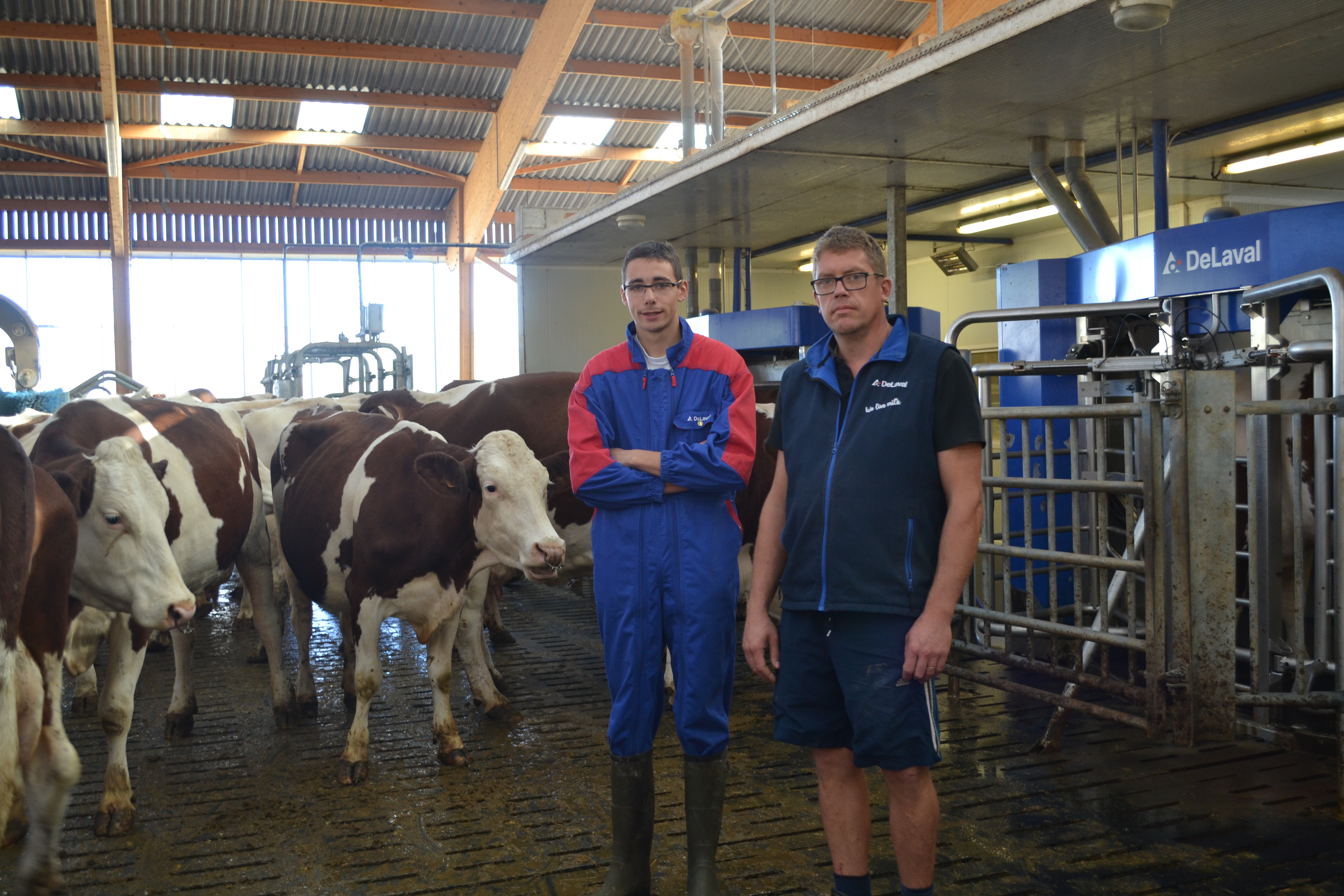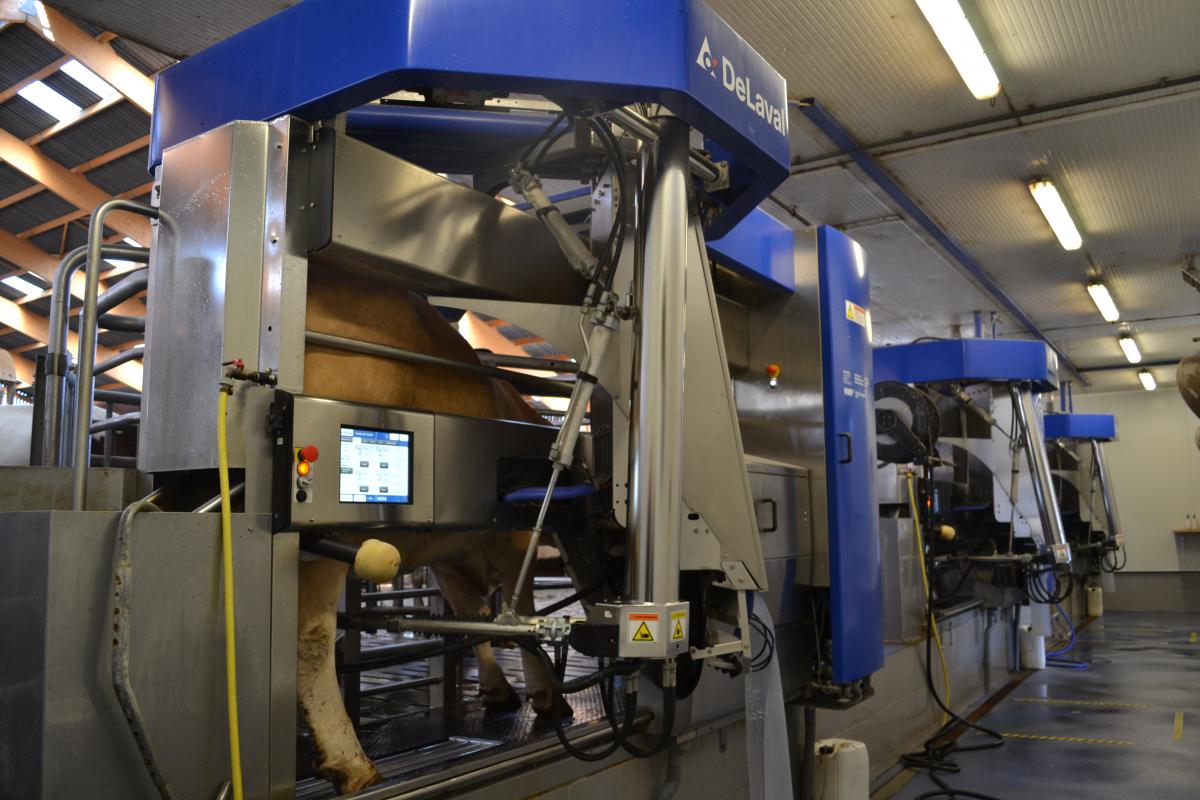L'exploitation possède actuellement trois robots de traite Delaval. Aujourd'hui, la production s'éleve à un million de litres de lait. En passant à 180 montbéliardes, les éléveurs souhaitent augmenter la production à 1,5 million de litres.