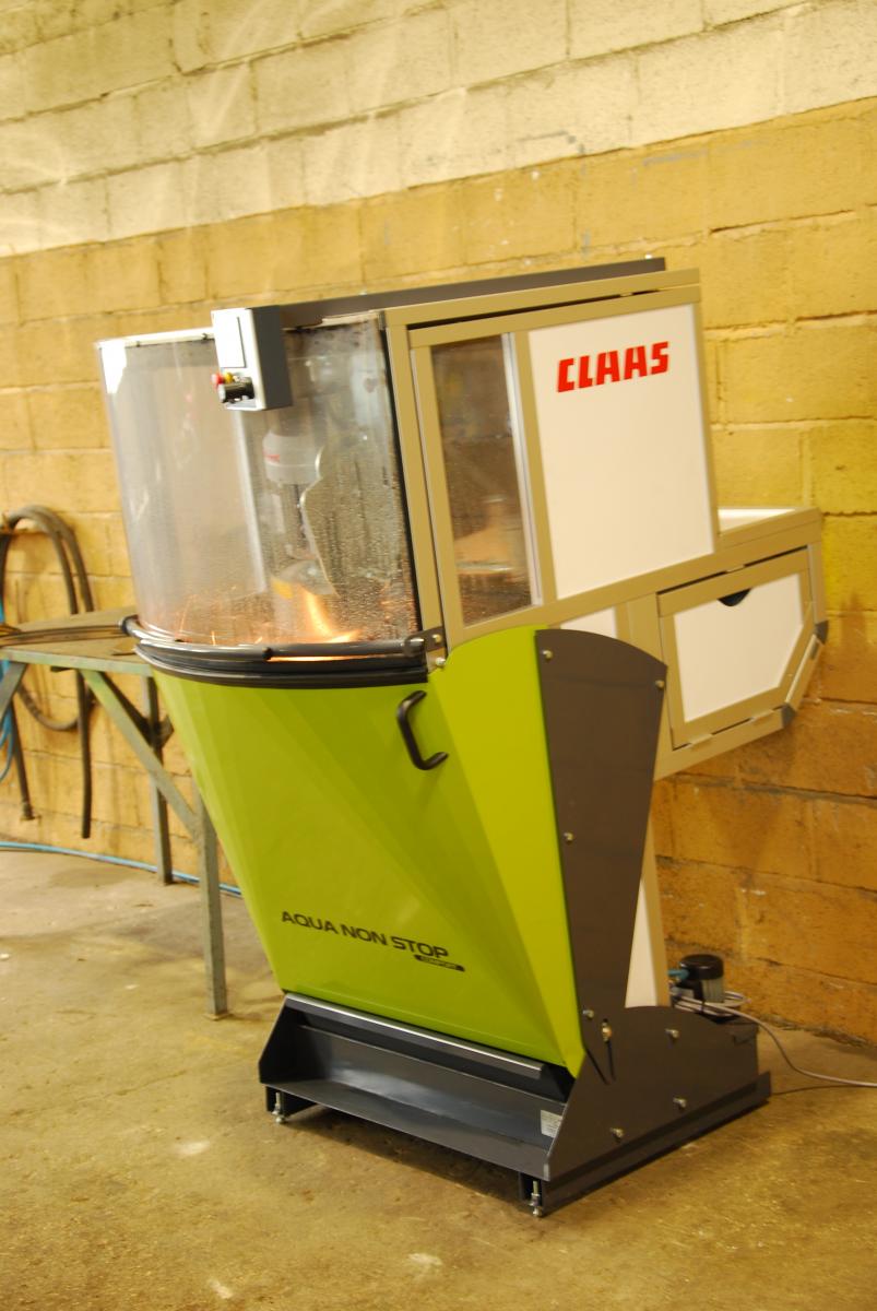 - L’Aqua Non Stop Comfort : il s’agit d’une station d’affûtage fixe qui permet d’affûter automatiquement jusqu’à 50 couteaux. Elle se veut également polyvalente. Avec 90 gabarits disponibles, l’Aqua Non Stop Comfort permet d’affûter les couteaux de différents outils tels que ceux des presses ou des autochargeuses de la gamme Claas, mais aussi des autres marques.