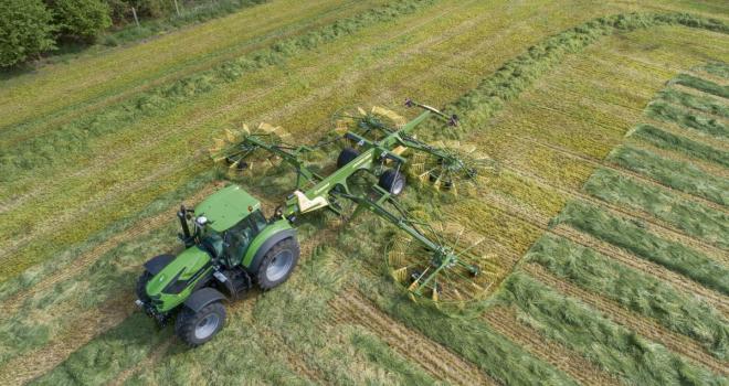 Avec le nouveau Swadro TC 1370, Krone enrichit sa gamme d’andaineurs avec un modèle central 4 rotors. L'andaineur reprend automatiquement, lors du dépliage des bras de rotors, les largeurs de travail et d’andainage sélectionnées précédemment, par exemple après un transfert routier. La largeur de travail se règle entre 10,80 m et 13,70 m ; la largeur d’andainage entre 1,40 m et 2,60 m.