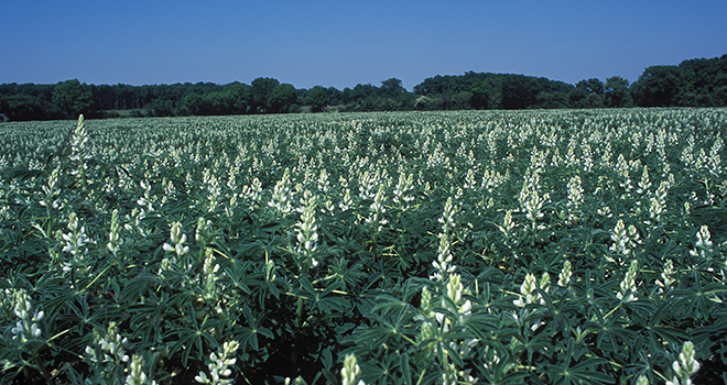 La graine de lupin, riche en protéines, peut être intéressante pour l'alimentation animale. Mais la culture en pure est sujette au salissement. Dans le cadre du projet Reine Mathilde, l’étude en Normandie de l'association du lupin blanc avec des céréales, conduit en agriculture biologique, a permis de dégager des résultats intéressants.