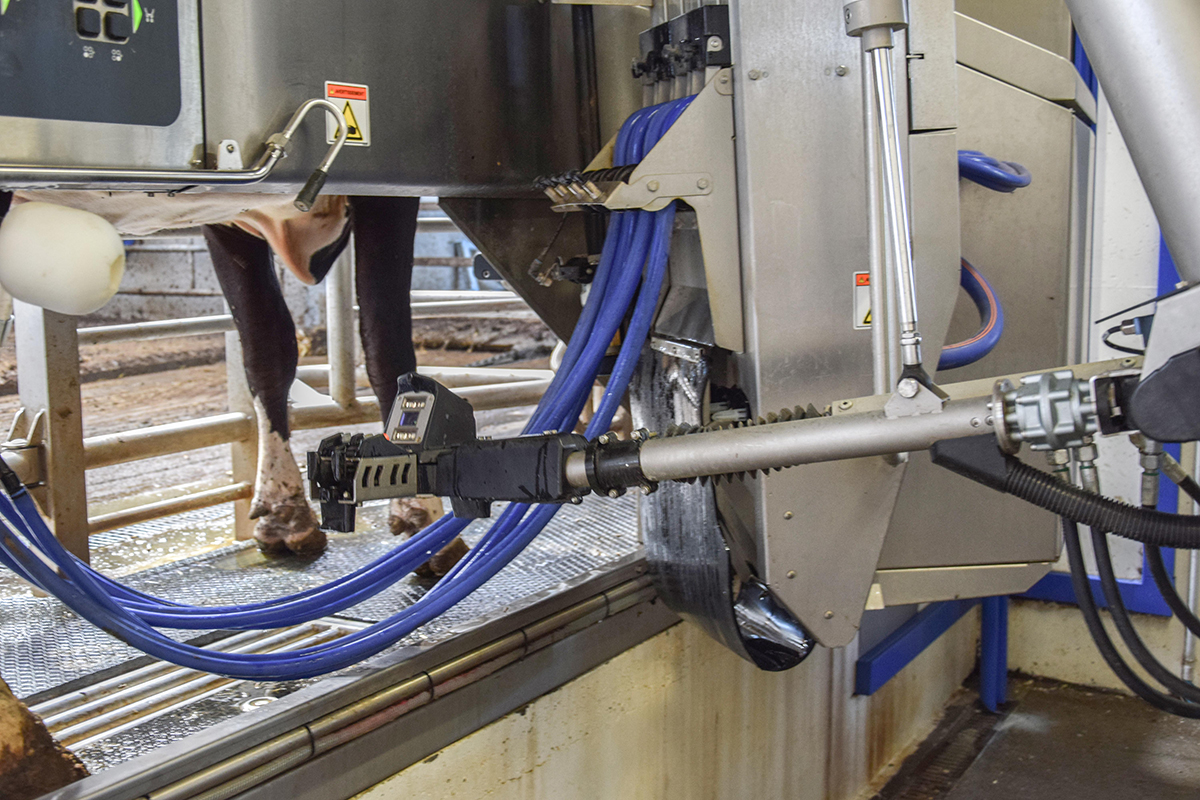 Outre la partie interface, le robot est doté du nouveau système de vision DeLaval InSight. D’après le constructeur, cette technologie de vision assure un branchement souple, rapide et précis. De plus l’éleveur n’a plus besoin de renseigner la position des trayons. Le robot est capable de brancher une vache en deux fois moins de temps que l’ancien modèle. Afin de garantir une hygiène sécurisée en sortie de traite, un nouveau moyen de pulvérisation est intégré. DeLaval affirme un taux de recouvrement des trayons de 99%. La consommation de produit d’hygiène de traite est alors de 5 ml/VL.