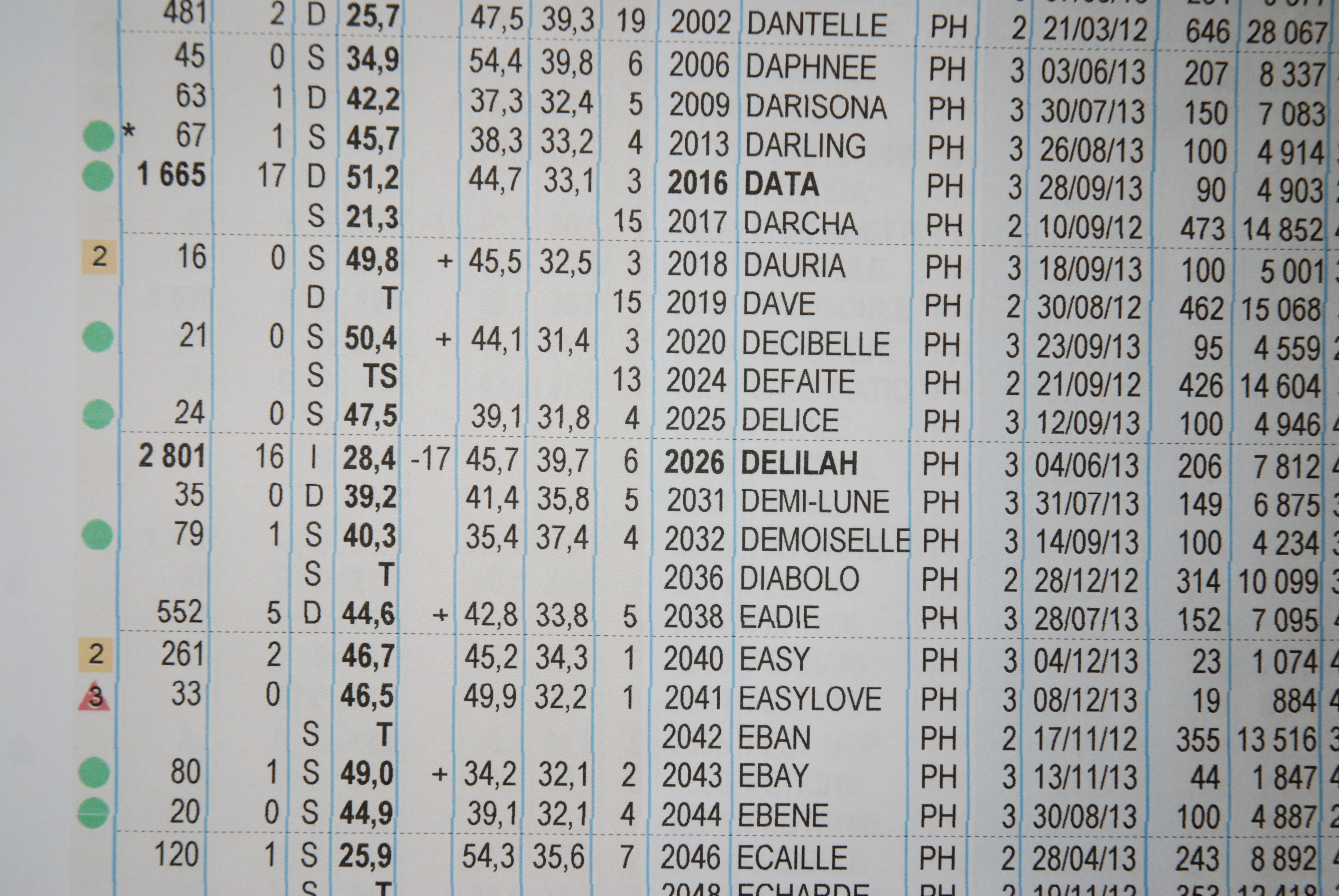Sur son tableau de bord mensuel, l'éleveur voit apparaître pour chaque vache un indicateur vert, orange ou rouge, assorti d'une note de 0 (animal sain) à 5 (animal malade) selon l'état de la vache.