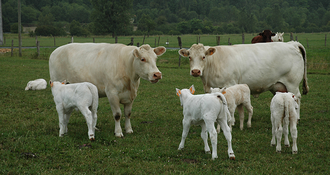 Sur la FEPL, les animaux sont conduits selon la méthode du pâturage tournant, sans complémentation. Sur l'ensemble du printemps 2015, le GMQ s'est élevé à 1133 g/jour pour les vaches, 1501g/j pour les veaux mâles et 1420g/j pour les veaux femelles (sur 81jours).