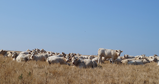 Baptiste Lamborot est installé en Gaec avec son cousin Vincent, depuis neuf ans. Ils élèvent des charolaises et ont repris la suite de leurs parents respectifs. Ce sont ces derniers qui, après la sécheresse de 2003, ont commencé à implanter des couverts, dans le but de refaire du stock, et de pallier les déficits fourragers estivaux. Depuis, chaque été, entre 30 ha et 40 ha de couverts sont implantés, entre deux céréales d’hiver.