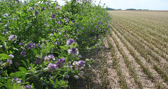 Coop de France Déshydratation a initié en 2009 un ambitieux programme de gestion différenciée des parcelles de luzerne, en expérimentant la non récolte, lors de chacune des 4 à 5 coupes annuelles, d’une bande d’environ 7m de large, correspondant à la largeur de la barre de coupe des faucheuses utilisées pour la récolte. L’objectif de cette mesure est de permettre à la luzerne d’accomplir son cycle jusqu’à la pleine floraison dans ces bandes, et ainsi de favoriser la biodiversité.