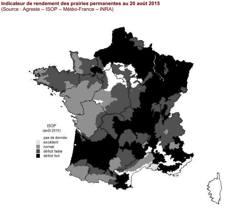 Source: Agreste Conjoncture – Prairies – n°5/7 – Les prairies vues par ISOP en août 2015.